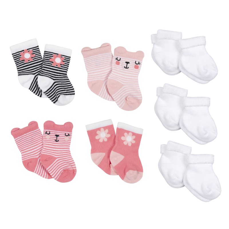 10-Pack Baby Girls Garden Floral & White Wiggle Proof Socks