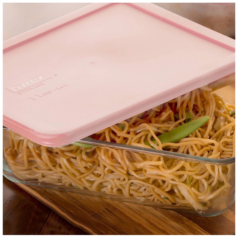 This 11-cup rectangular container with plastic lid is the perfect size, whether youre prepping for a family-size meal, or need a jumbo container for leftovers. The durable glass container has a secure-fit lid to keep food fresh. And the pure Pyrex glass st