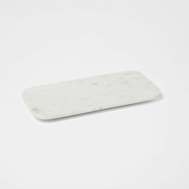 Spread elegance over your dining table by updating your serveware with this Marble Serving Platter from Threshold. Crafted from white marble with textural accents for timeless appeal, this rectangle serving platter is finished off with curved sides to add