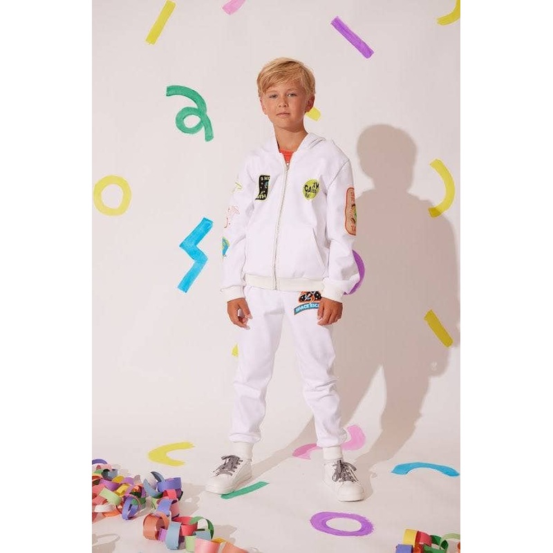 Description:Trendy "2 Cool For This Earth" set featuring a stylish jacket and joggers.Eye-catching patches and designs for a playful and unique look.Comfortable and soft fabric for all-day wear.Perfect for casual outings, playdates, and everyday activities