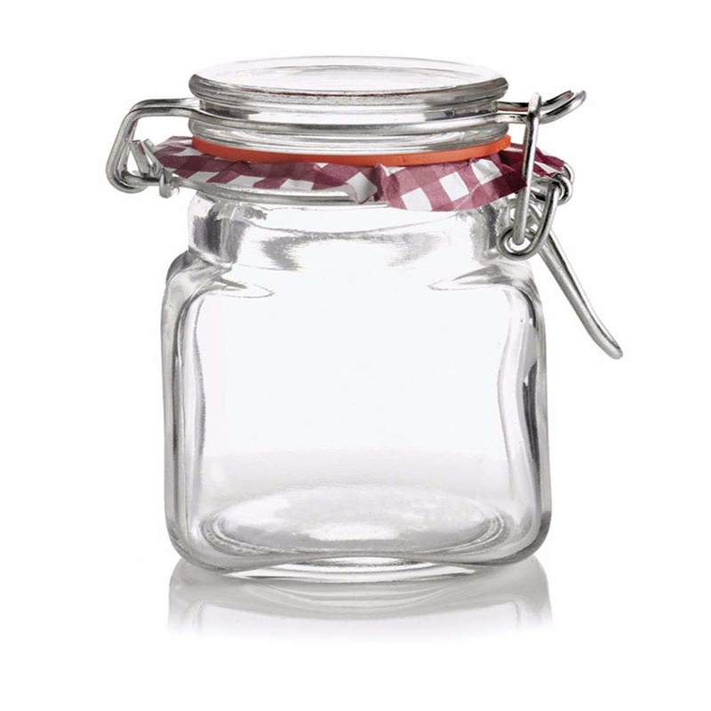 Store herbs, spices and more in this 2 oz Clip Top Square Spice Jar. This little jar features an airtight rubber seal that will keep contents fresher longer. It can also be used to store other items like glitter or beads.Glass lid with hinged metal clip an