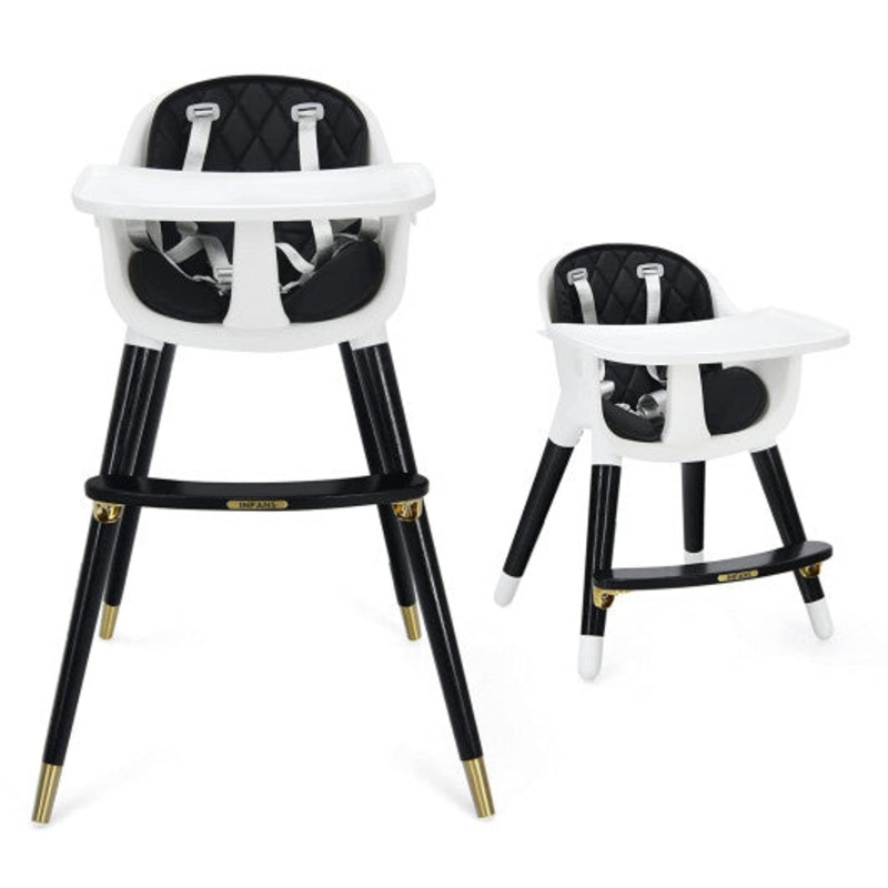 3-in-1 Adjustable Baby High Chair With Soft Seat Cushion for Toddlers-Black
