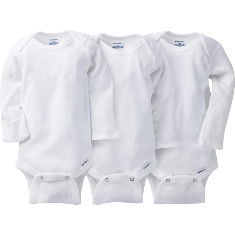 This three pack of organic white Onesies bodysuits is the perfect addition to any babys wardrobe. They are made with 100% cotton with organic fibers, which is a safe, soft fabric that is ideal for babys sensitive skin. They are the perfect apparel to use for layering to keep baby warm, but they are also great worn all on their own! These bodysuits are designed with you in mind, as the bottom snap is higher in front to provide for easy diaper and outfit changes. The long sleeves lend well for layering when the weather is colder. Plus, these long sleeve bodysuits are easy to clean! They are machine washable and dryable, so laundry isnt quite as much of a hassle. These white bodysuits truly are a must-have for baby, which makes them a great shower gift! Theyre safe, practical, comfortable, and down-right cute!