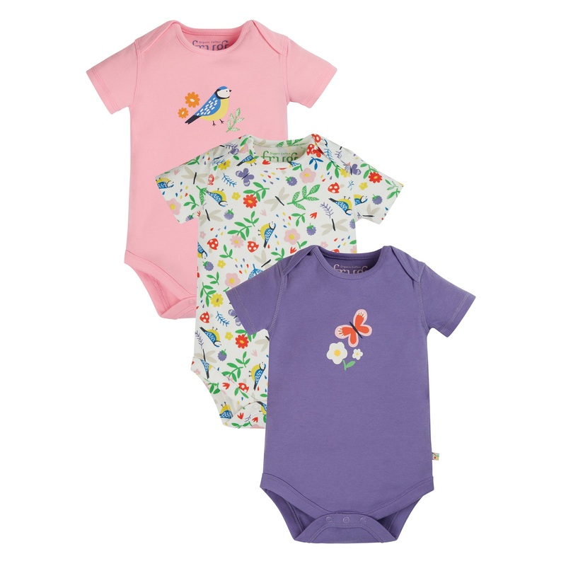 This season Frugi's much-loved bodysuits have been inspired by the colorful flora and fauna of Cornish hedgerows!In a handy 3-pack, these short-sleeved baby onesies are an absolute essential for mini wardrobes and perfect for popping under your little one'