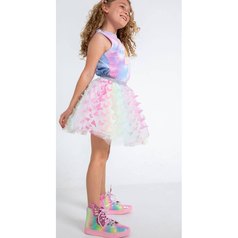 • Enchanting tutu skirt adorned with pastel 3D butterfly appliqus for a whimsical and fairy-like look.