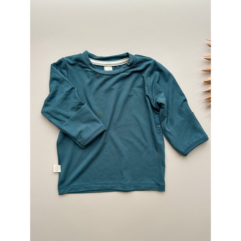 4/5T Long Sleeve T-shirt with Mittens | Baby & Toddler | Luxury Bamboo | Dark Teal