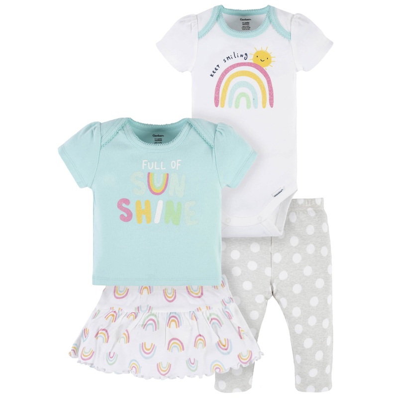 4-Piece Baby Girls Dots Of Rainbows Onesies Bodysuit, Tee, Skort & Pant Set