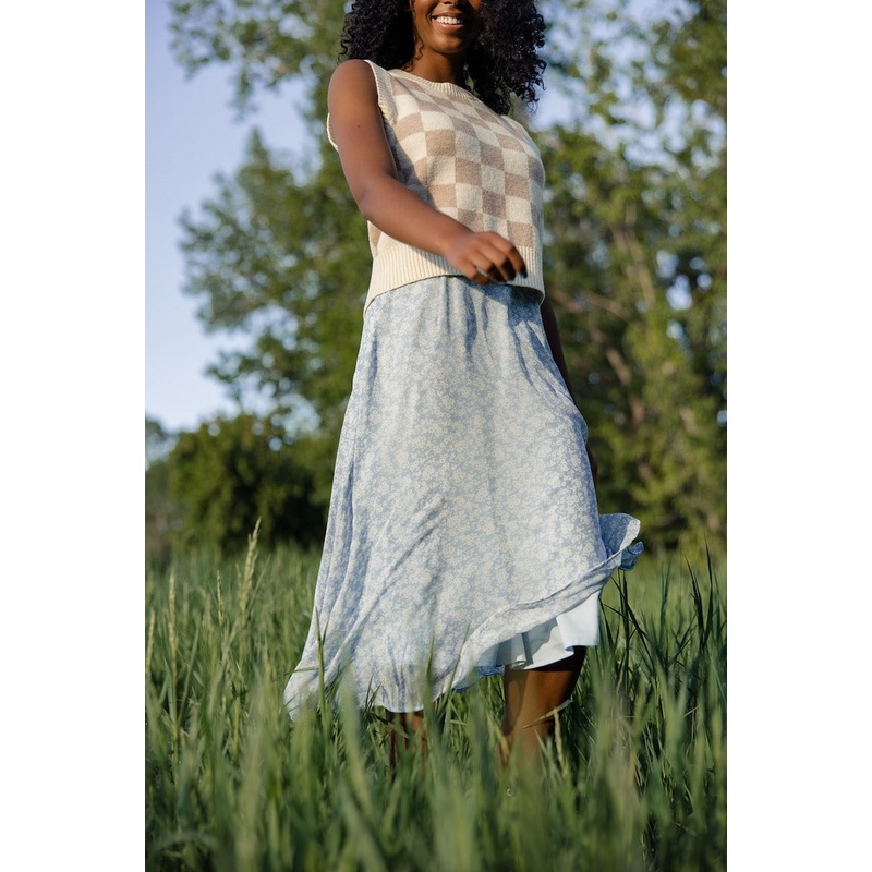 There are a million reasons to love this skirt!The vibrant blue hues and delicate floral pattern capture the essence of the season, bringing a touch of freshness to your outfit. Crafted from lightweight fabric, this skirt ensures a breezy and comfortable fit, keeping you cool during those hot summer days. Embrace the beauty of summer with this must-have blue floral midi skirt; the perfect addition to your wardrobe.