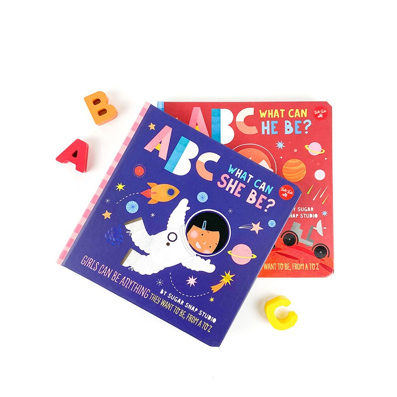 Not even the sky is the limit with this fun approach to learning the alphabet in this adorable book by Sugar Snap Studio. This board book encourages young girls by presenting 26 different career paths, including engineer, writer, neurosurgeon, software eng