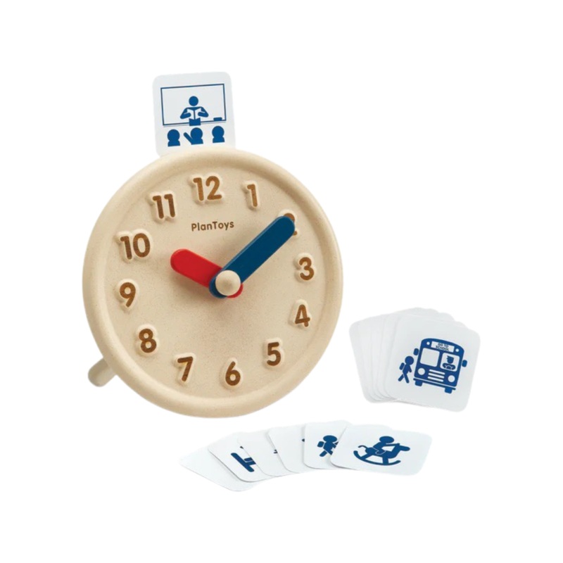 Discover how time relates to various daily activities and routines. Through play, children can familiarize themselves with the 12-hour clock and learn to differentiate between day and night. The clock also features activity cards that can be placed at the