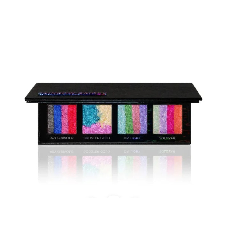 AnotherFUGLYpalette, designed for the face, but safe for eye use and inspired by The Flash villain, Rainbow Raider. Featuring four (4) powder iridescent, rainbow highlighters with zero white cast.This palette is 100% free of talc, glitter, oil and BHT. (Th