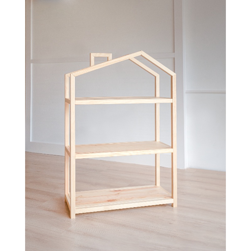 Our Aidan House Shelf has a sleek and modern design with ample space for all of your kids' most treasured items. This mid-century style shelf makes the perfect addition to a playroom or kids' room. It's minimalist design and natural wood finish make it a v