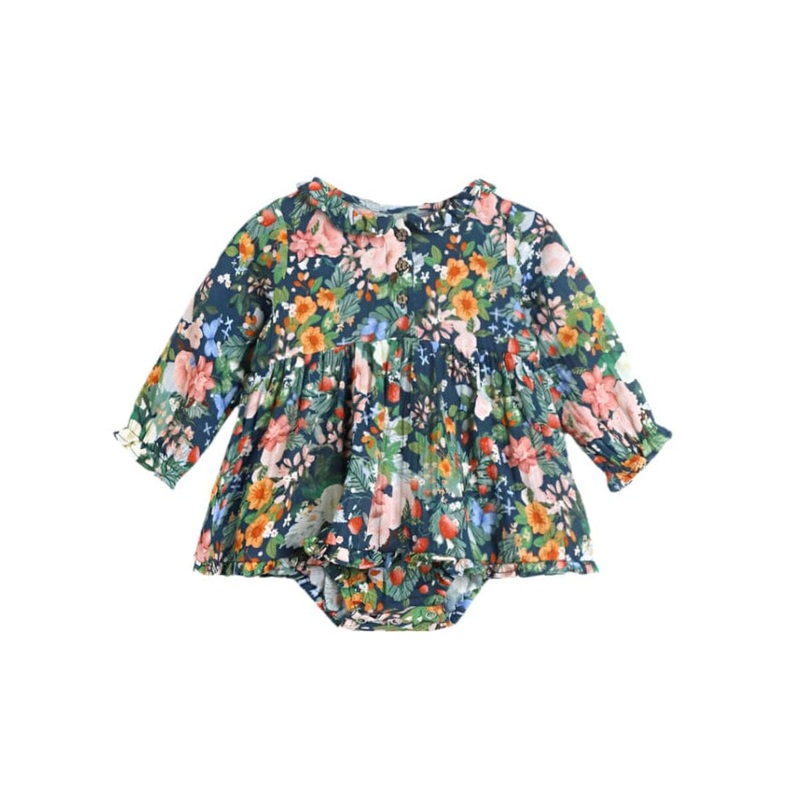 The Ivy Baby Dress in Strawberry Navy … Where sweetness meets sophistication in the most adorable way. The Ivy Baby Dress features a gorgeous frill collar with a vintage flair and sleeves with the cutest frills at the cuffs.