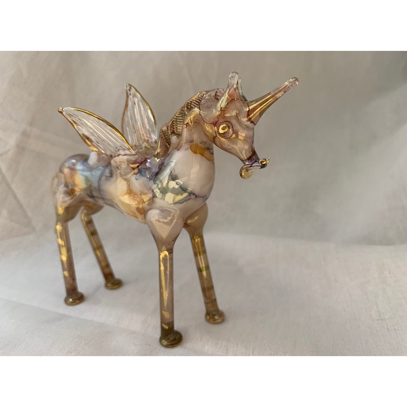 Decorate with a dash of fairy-tale magic with a pink ceramic glass alicorn. Each delicate hand-blown ornament was created by our artisan partners in Egypt, and your purchase of this meticulously crafted piece supports them and their families.