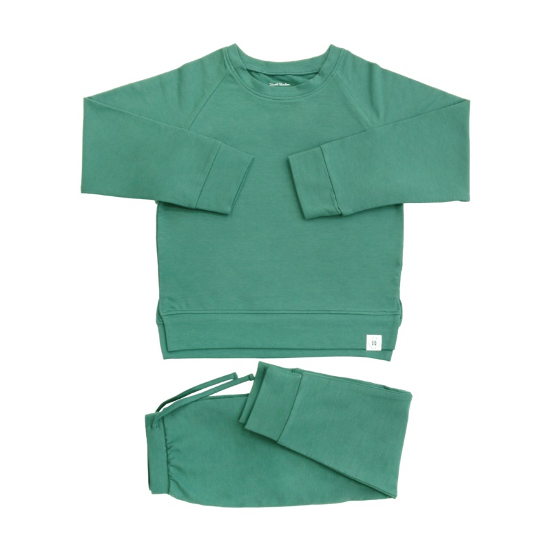 Perfectly Stylish for All SeasonsThis jogger set will have you at hello with it's plush feel and comfy loose fit. Your little one will have style and comfort all day long. Perfect for matching and coordinating too!Matching crew neck top with pocket and jog