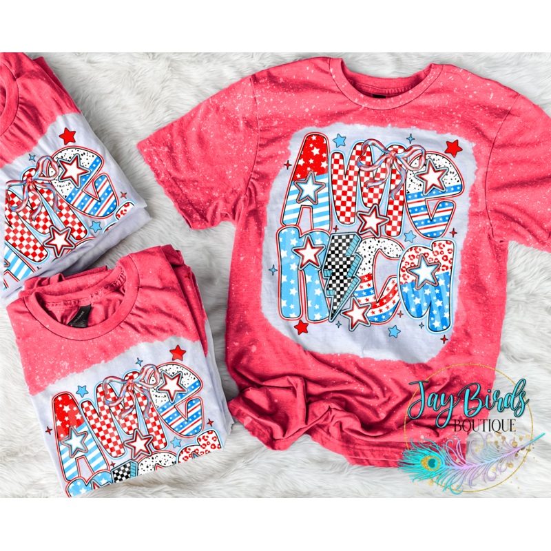America Doodle|Small|Medium|Large|Xlarge|2X|3X|4X|Red|Blue|Dark grey|Light pink|Orange|Purple|Green|Berry|Pink