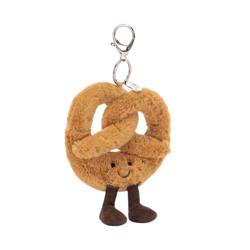 Amuseables Pretzel Bag Charm is a foodie delight wherever you go! Baked to perfection in golden brown fur and sprinkled with stitched salt speckles, this smiling pastry has fine cord legs and a silver claw clip. Attach to any bag to add a little dough to y