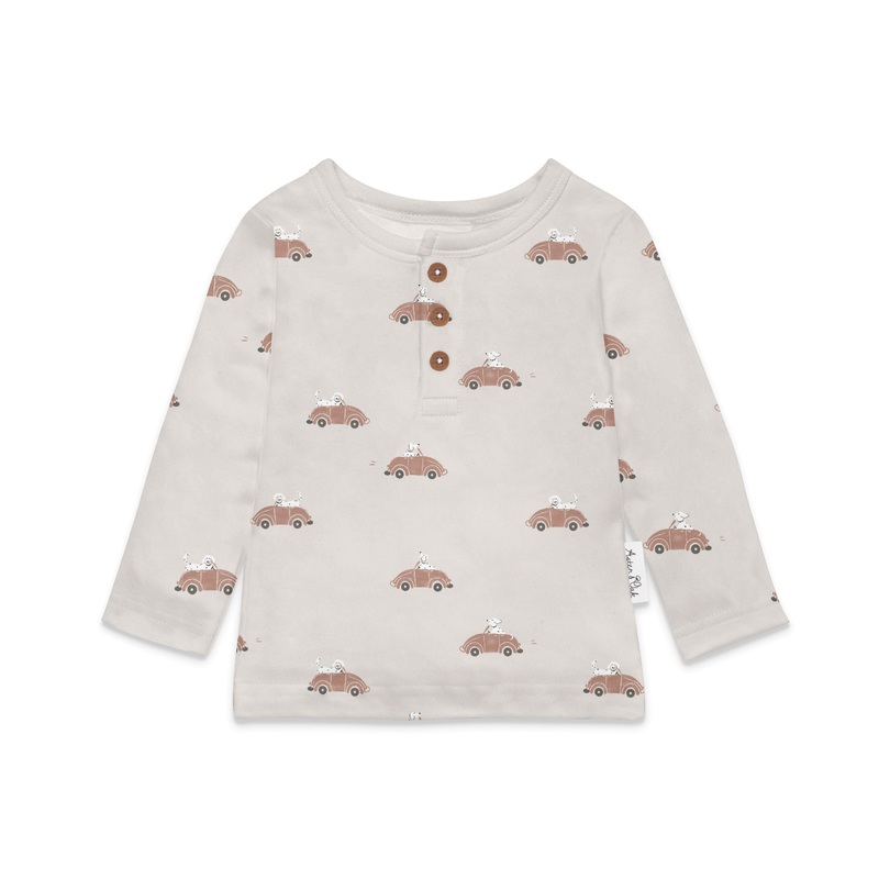 Made with GOTS certified organic cotton, this henley long sleeve top features all over classic car print, with faux coconut buttons to neckline.100% Organic cotton.Made in India.Wash according to care instructions.Cherrie Baby Boutique is a leading stockis