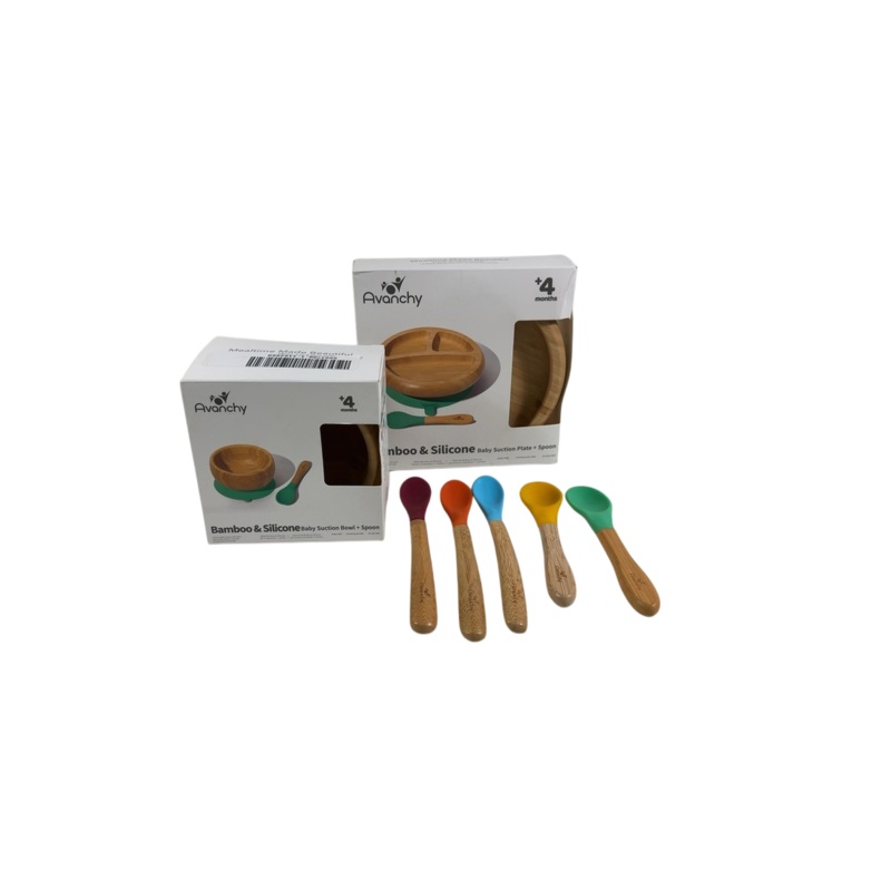 Condition: Barely Used Choose a healthier option for your feeding time and delight your baby with this natural bamboo wood and silicone set. The suction underneath the plate and bowl will ensure there are no spills. Theyre BPA, Phthalate, plastic and lead-