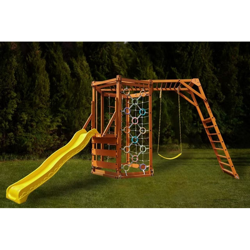 Transform your backyard into a private adventure zone with the Avenlur Hawthorn XL Outdoor Wooden Playseta complete playground experience designed for active kids. This multi-functional playset features a wave slide, classic swing, rock climbing wall, monk