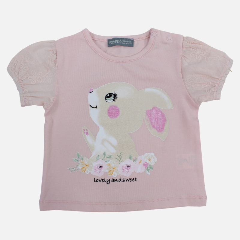 Baby Girls Cotton T-Shirt Rose Pink with Bunny Print