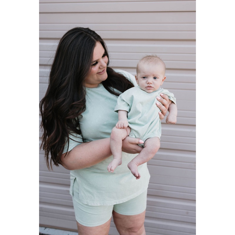 Experience the perfect blend of style and convenience with our Vintage Washed Spearmint Baby Romper. The mineral wash adds a unique touch while the ribbed neck line and leg holes ensure a snug fit. With easy snap buttons, diaper changing is a breeze! Elevate your little one’s wardrobe today!
