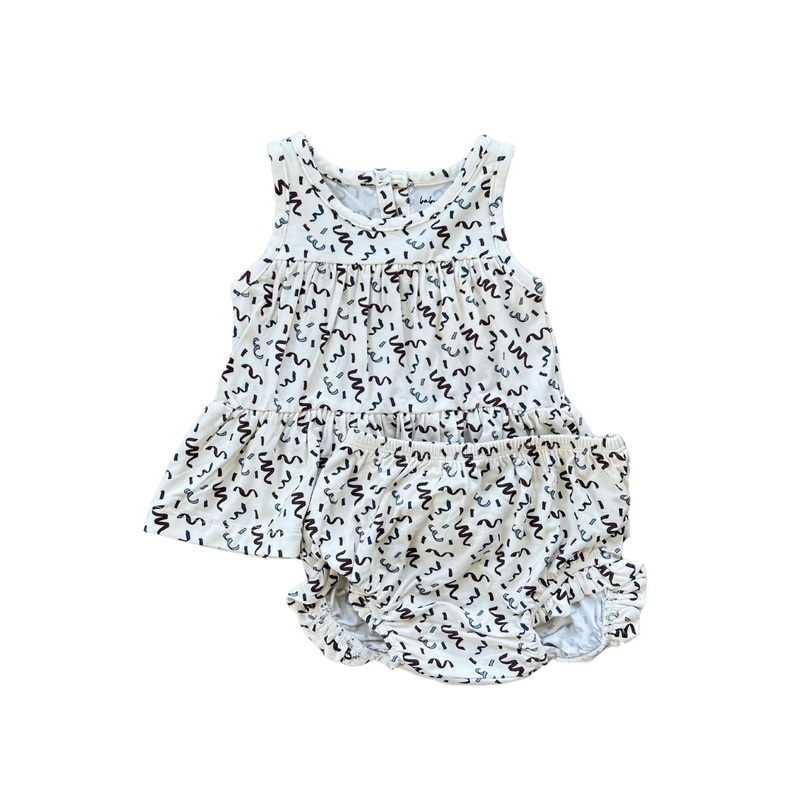Let your girl shine in our Double Peplum Tank Set! Featuring a soft, breathable fabric and a playful double-layered peplum top, this set is perfect for sunny adventures or relaxed days.