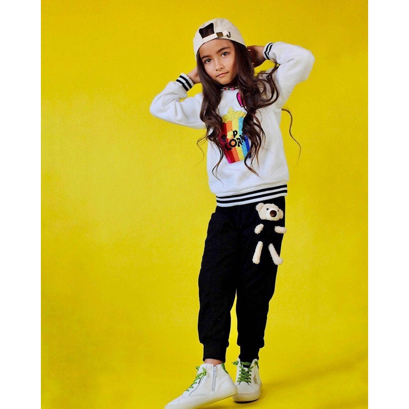 Description:Adorable pants featuring a built-in pocket to hold a detachable plush teddy bear for added charm and fun.Designed with a soft elastic waistband and cuffed hems for a snug and secure fit.Perfect for playtime, casual outings, or bringing a little
