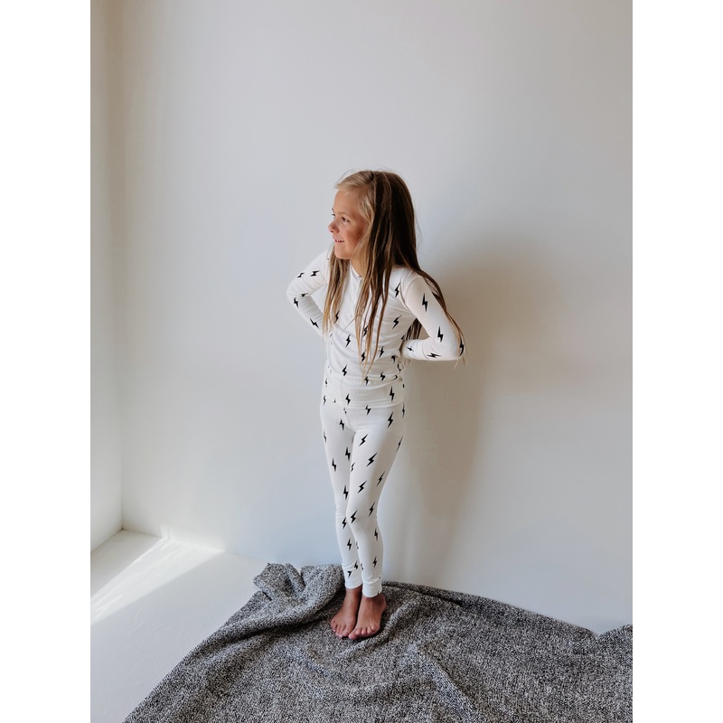 Bamboo Two Piece Pajamas | Black & White Lightning Bolt