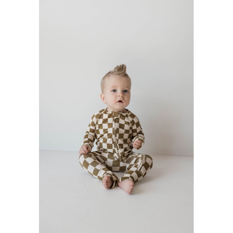 Bamboo Zip Pajamas | Olive Checkerboard Newborn