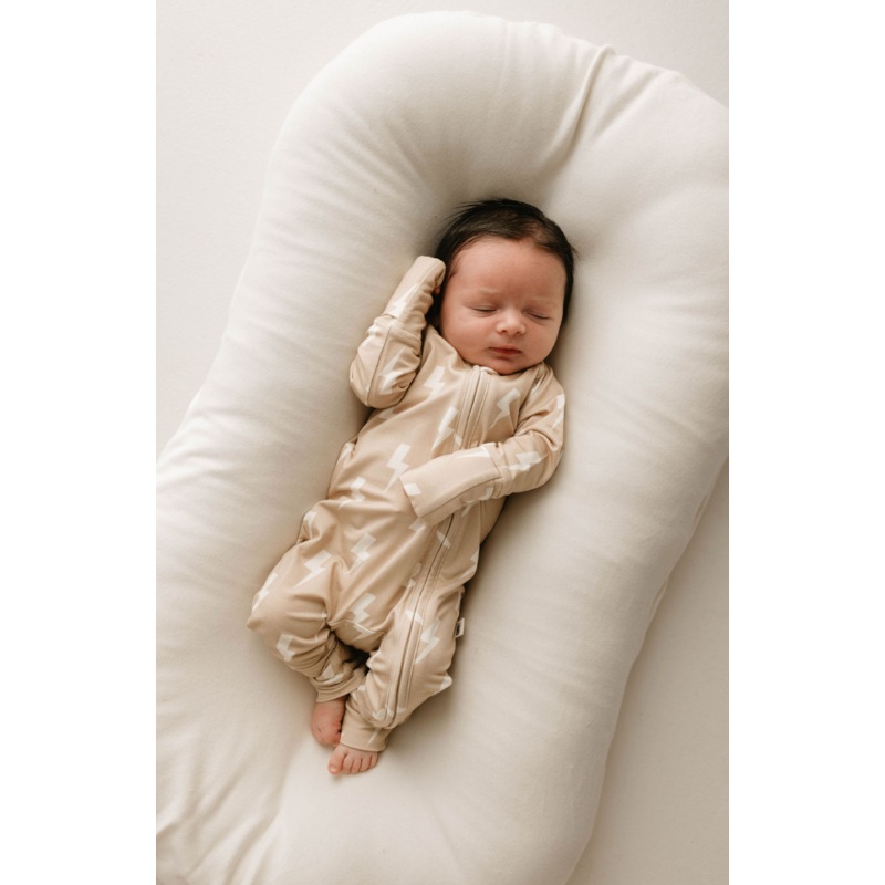 Bamboo Zip Pajamas | Tan & Cream Lightning Bolt Newborn