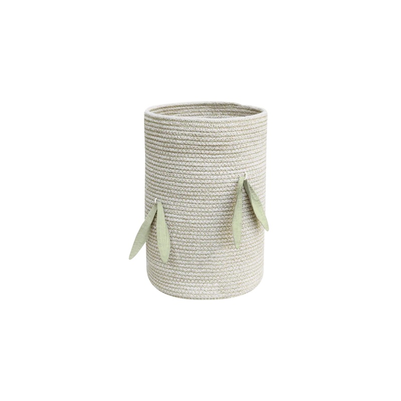 Organize your belongings with our eco-friendly Bamboo Cane storage basket! Each piece is meticulously handcrafted using a blend of recycled PET-bottle fibers and natural cotton, skillfully woven into braided cords. The basket showcases contrasting olive-colored stitches that elegantly unite the cords, while removable bamboo leaves in a certified organic cotton fabric add a touch of visual appeal. Not only does this basket offer a sustainable storage solution, but it also adds a hint of natural beauty to your space. Choose the Bamboo Cane basket for a stylish and environmentally conscious way to keep your items in order.