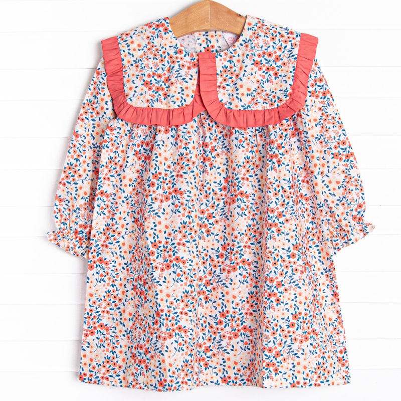 Beautiful, Berry Breeze! This dress features a red floral print, a bib collar, and red ruffle trim. This dress is just too cute!