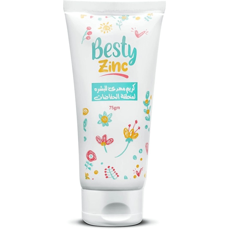 A Premium diaper rash cream with Zinc oxide (15%), Panthenol, and 5% Olive oil. Besty Zinc Diaper Rash Cream instantly forms a protective layer on your baby’s skin to soothe and relieve rash discomfort, providing relief from the first use. This Paraben-free, Phthalate-free, hypoallergenic creamy formula goes on smoothly and wipes off easily. making Besty Zinc Diaper Rash Cream your everyday partner in protecting against and treating diaper rash. Uses: Helps treat and prevent diaper rash. Benefits: Relieves diaper rash discomfort from the very first use Helps reduce redness and irritation of sensitive skin Forms a protective barrier on the skin Provides moisturization to the skin Allergies: Paraben-free, Phthalate-free, and hypoallergenic. Directions: Change wet or soiled diapers promptly. Cleanse the diaper area and allow to dry. Apply Besty Zinc Cream as necessary, with each diaper change, especially at bedtime or any time when exposure to wet diapers may be prolonged.