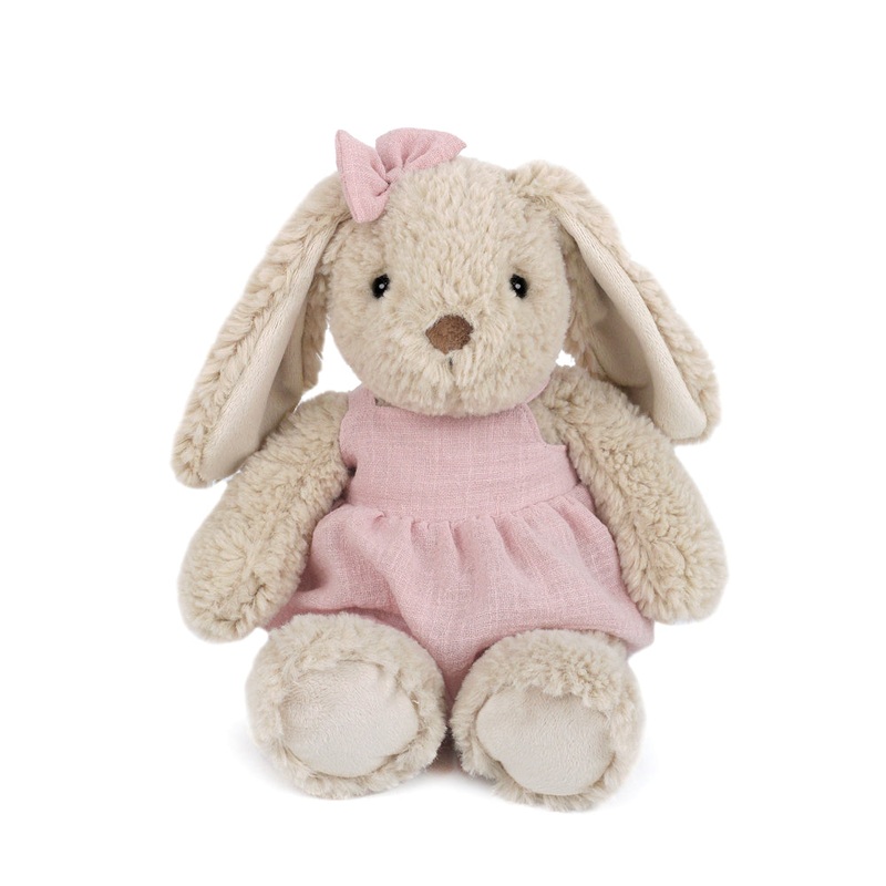 Bettie Bunny, the most delightful little bunny who hopped straight out of a blooming, magical garden! With her fur as soft as a cloud and velour-lined floppy ears she's the perfect blend of charm and cuddles. Dressed in her darling pink dress, Bettie adds