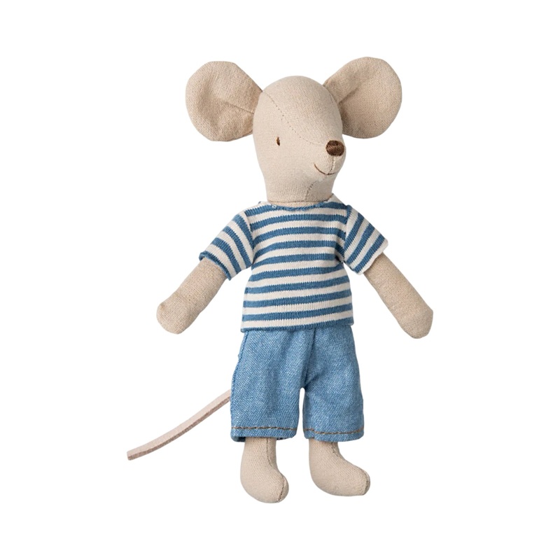 This mouse is called LouiMax and he is a really adventurous guy. He wears a blue striped shirt and a pair of denim pants. The mouse has magnets in his hands and is sold in a decoration box. The mouse is size big brother.