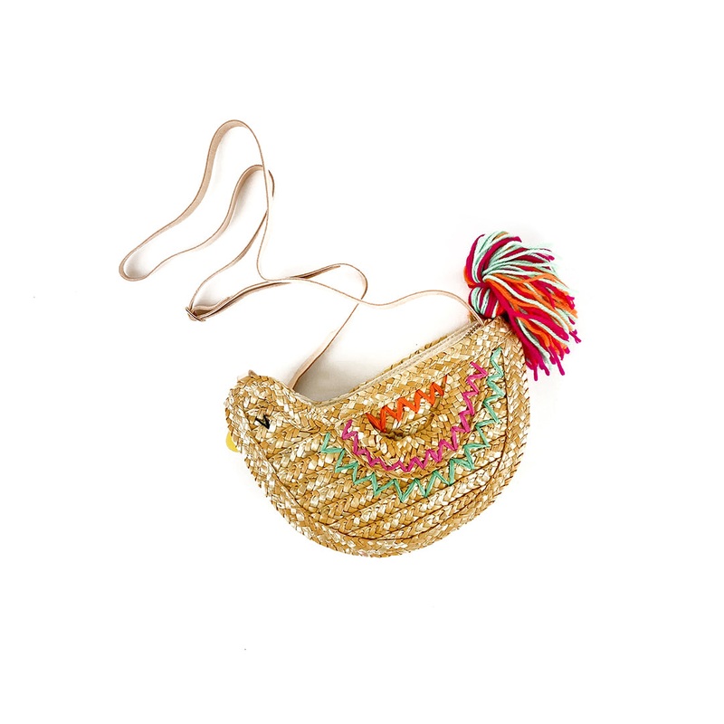 Theres nothing not to love about this amazing bird-inspired straw purse - its a must-have accessory for little ones. The purse is lined with canvas and has a durable leather strap and wool yarn tassel tail. It also opens and closes easily with a gold zippe