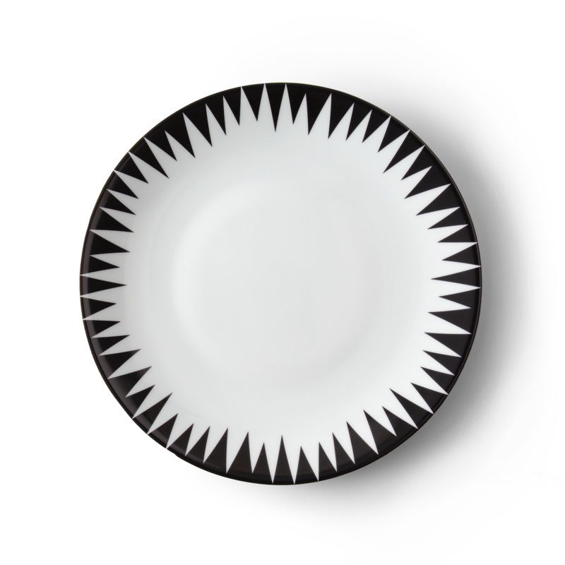 Molecots sophistication arrives by way of its founders, three Spanish businesswomen and friends, who sought to augment the art of entertaining with fine tableware. Inspired by trips across the world, fashion, and art, every occasion becomes unique with these pieces embrace of both tradition and contemporary style. Featuring a precise yet artful pattern in black tips, as well as gold finishing, the Black Punk series is at once standout yet classic. Crafted in Limoges porcelain and hand-painted, the Black Punk Dinner Plate is ideally elegant for serving fish off the grill, pastas, salads, and more.