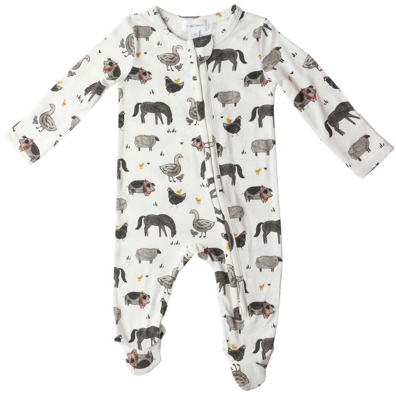Please note: this item is final sale and cannot be returned. This little farm animal-inspired footie is as cute as can be! Angel Dear remains one of our favorite go-to baby and gift brands. Each footie in the line is made from a super stretchy and soft (5% bamboo-derived viscose + 5% spandex) material that is gentle on babys skin and will leave you wondering why they dont make adult clothes from the same material.