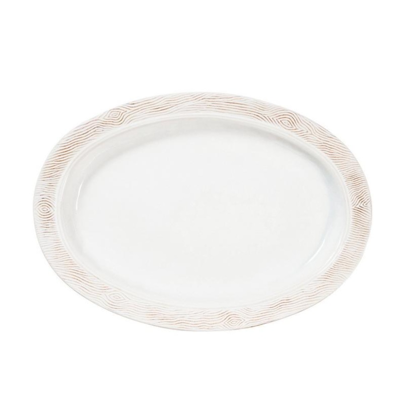 As newlyweds and self-proclaimed romantics, Capucine and David Gooding founded Juliska in 2001 with a small collection of mouth-blown Bohemian glasses. Today, its the tableware and home brand every good hostess needs to know.Inspired by the majestic oak trees of the English countryside, the artisanal woodgrain pattern of the Blenheim Oak 18″ Platter in Whitewash is rendered with a peaceful palette of creams and warm browns in our signature whitewash glaze, to complement everything from casual summer barbecues to formal holiday tables.