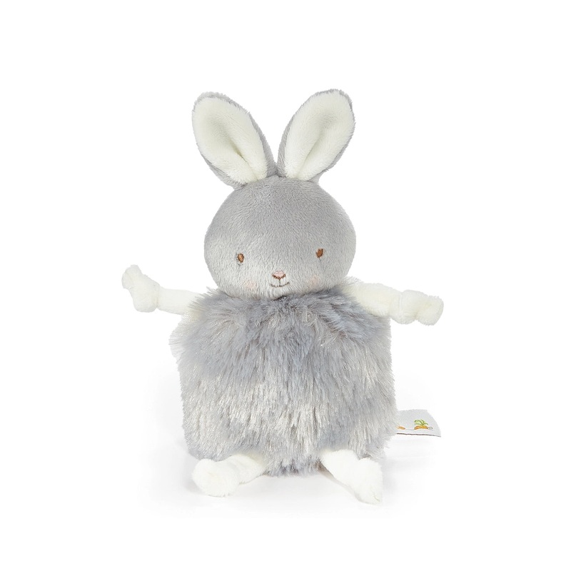 This teeny new friend happily fits in the tiniest hands. This is a fluffy round gray furred stuffed bunny with velour face and dangly arms and legs. Features an embroidered face and our signature blushed cheeks.5 inches tall; 100% polyester; safe for all a