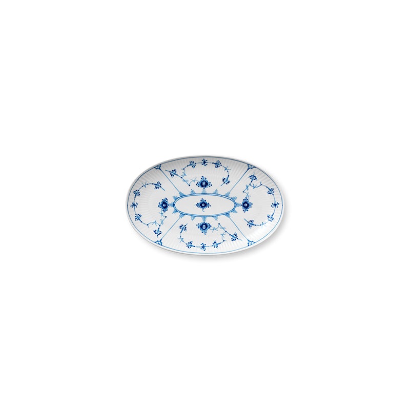 Blue Fluted Plain Oval Asiette 23cm 9