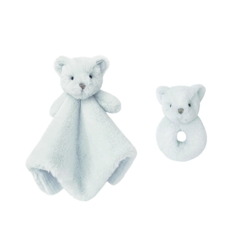 BLUE LUXE BEAR LOVIE AND RATTLE SET