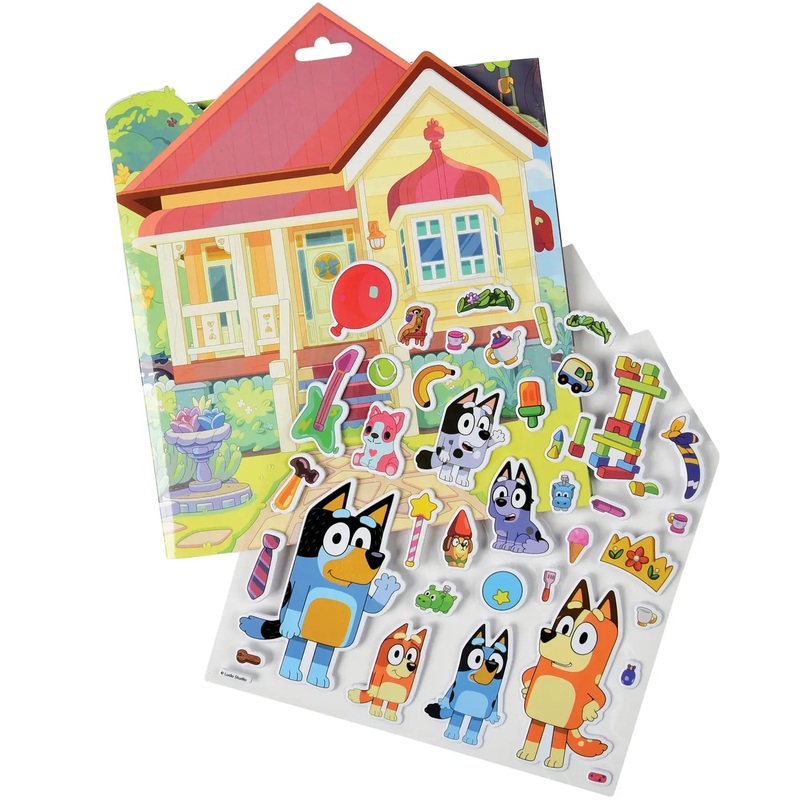Immerse yourself in the world of Bluey with this one-of-a-kind sticker playset! 12 units per case pack. Features: Bluey licensed toy, stickers, sticker book, bluer stickers.