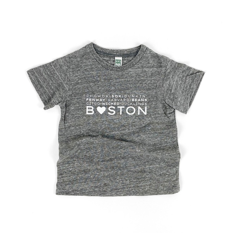This grey slub Boston tee features a handful of words that describe Beantown best. Locals will recognizes wicked and chowda, but everyone will love the shirts!