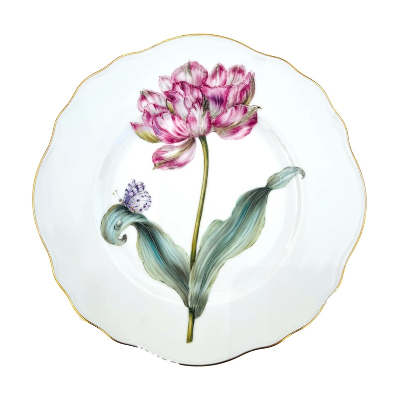 Inspired by 18th-century botanical illustrators, Hungarian designer Anna Weatherley creates hand-painted porcelain pieces to adorn the home, from dinnerware to stunning tablescapes. The Botanical Treasures Dinner Plate adds a touch of elegance to any setti