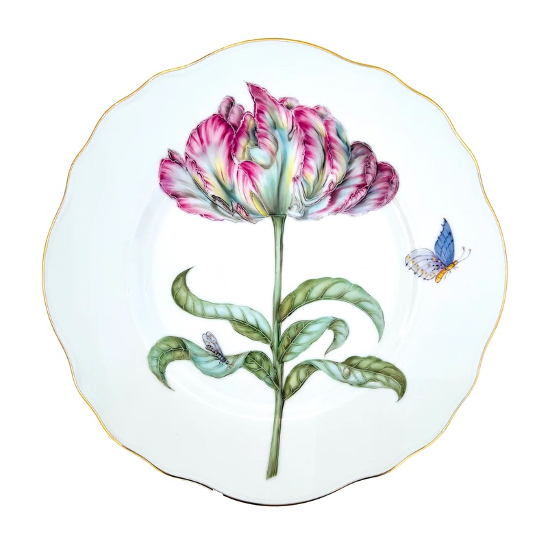 Inspired by 18th Century botanical illustrators, Hungarian designer Anna Weatherley creates hand-painted porcelain pieces to adorn the home, from dinnerware to stunning tablescapes. The Botanical Treasures Dinner Plate adds a touch of elegance to any setti