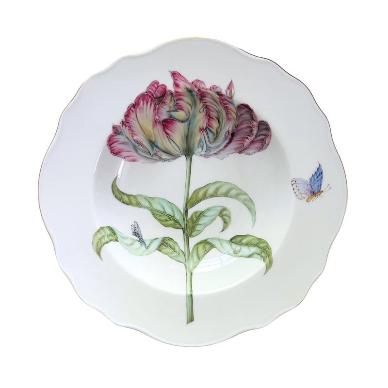 Inspired by 18th Century botanical illustrators, Hungarian designer Anna Weatherley creates hand-painted porcelain pieces to adorn the home, from dinnerware to stunning tablescapes. The Botanical Treasures Soup Plate adds a touch of elegance to any setting
