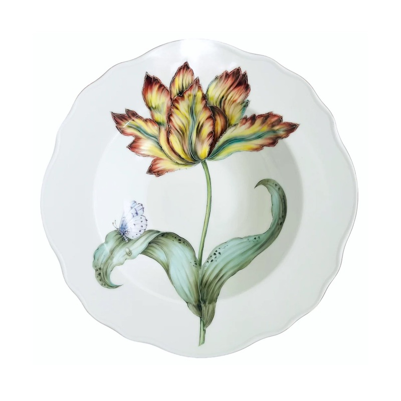 Inspired by 18th Century botanical illustrators, Hungarian designer Anna Weatherley creates hand-painted porcelain pieces to adorn the home, from dinnerware to stunning tablescapes. The Botanical Treasures Soup Plate #5 adds a touch of elegance to any setting. Boasting a classic and glazed look, this plate is made to serve and entertain in style.