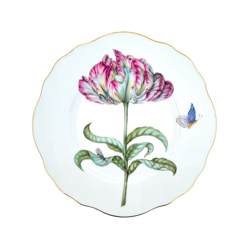 Inspired by 18th Century botanical illustrators, Hungarian designer Anna Weatherley creates hand-painted porcelain pieces to adorn the home, from dinnerware to stunning tablescapes. The Botanical Treasures Salad Plate #3 adds a touch of elegance to any set